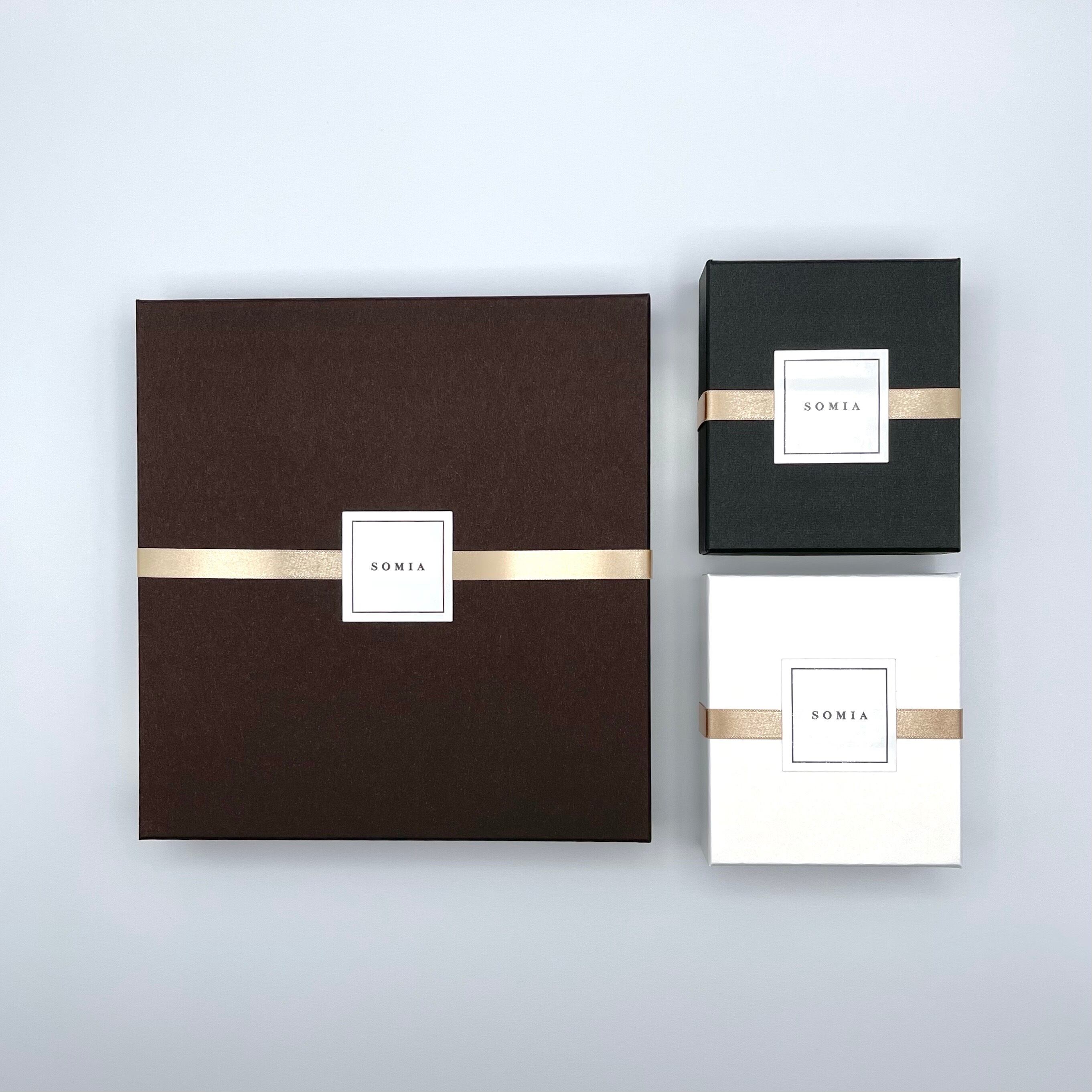 箱の色やサイズは当店のおまかせとなります。通常パッケージにはショッピングバッグ(手提げ袋)はお付けしておりませんのでご注意ください(有料のギフトラッピングをご用意しております)