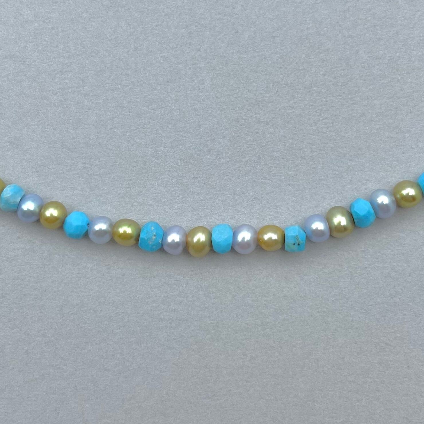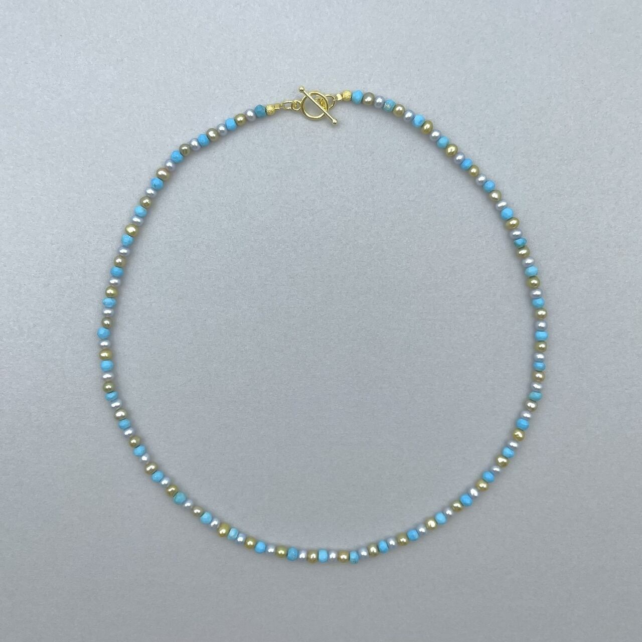 ターコイズの鮮やかで美しい輝きがエキゾチックな雰囲気を演出し、パールの天然の美しい光沢が魅了します。華やかな場にもカジュアルな日常にもマッチしますが、リゾート地でのパーティーやデートなど、特別な場面にぴったりです。さり気なく首元を彩り、あなたの魅力を引き立てます。